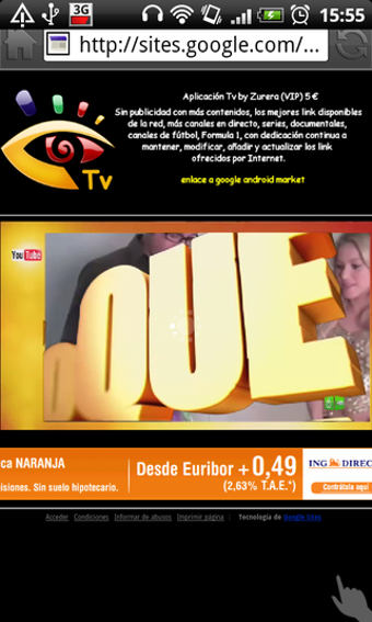 Tv by Zurera VIP carga el canal que seleccionas y abre un enlace en Internet desde el que puedes ver la emisión, directamente en tu dispositivo móvil.